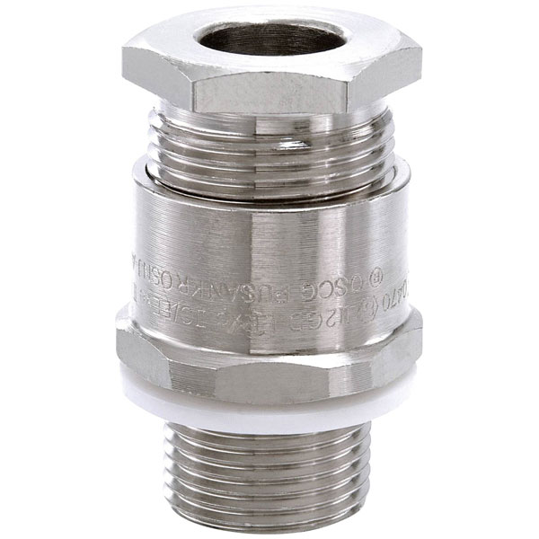 Brass cable gland for unshielded cables, sealing on the outer sheath of the cable. Approved according to ATEX and IECEx.