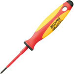 Phillips VDE screwdrivers made by Witte. The combination of hard and soft surfaces and the tried and tested triangular handle improves both the grip qualities and the power transfer. Additional security is provided by the non-slip edge at the end of the handle. Tested according to VDE standard for work on live parts up to 1000V.