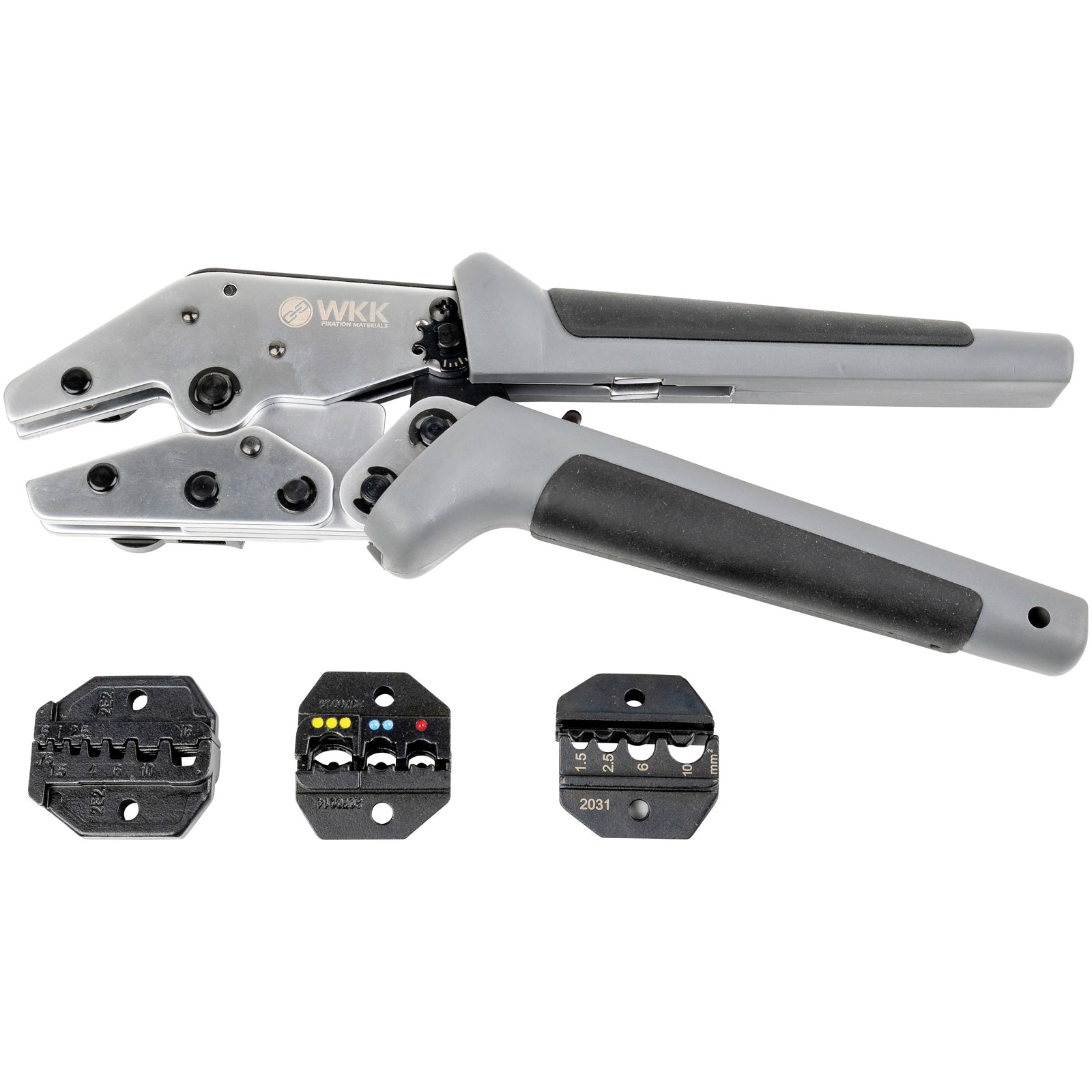 The WKK 57818 crimper is a versatile tool designed for crimping ferrules and cable lugs ranging from 0.5 to 16 mm². Manufactured by WKK, it highlights precision and durability in electrical installations. Typical applications include securing connections in residential and commercial wiring projects.