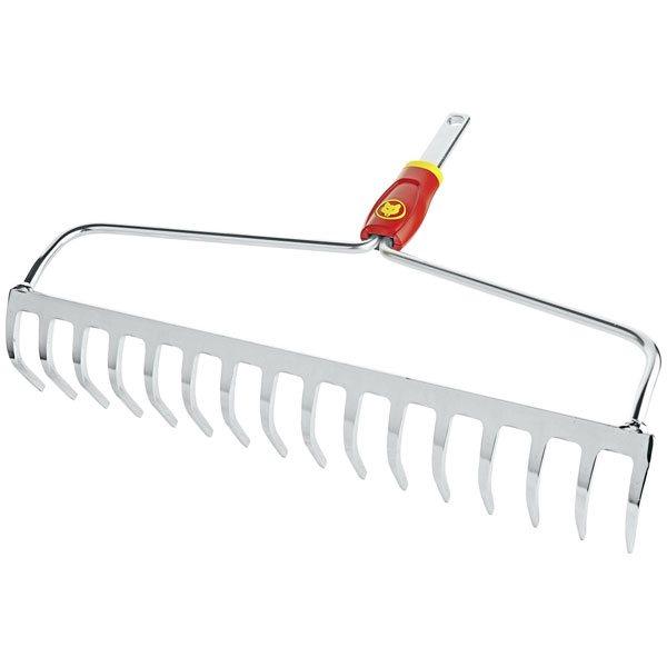 The WOLF-Garten bow rake, model 71AAA029650, features a 40 cm width, ideal for soil levelling and garden debris removal. Manufactured with the robust WOLF Combisystem, it guarantees reliability and ease of use. This tool is perfect for maintaining tidy garden landscapes and preparing seedbeds.