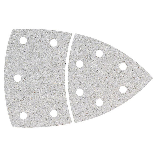 These 2-part sanding sheets from Wolfcraft are for painted surfaces, metals, and plastics. Their special surface coating resists clogging when sanding paint, varnish or filler up to 4 times longer than standard sandpaper. The 95mm sheets are for Delta and multi-sanders. The sheets have dust extraction holes and are split into two sections.