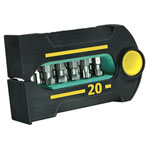 Wolfcraft Screwdriver bit set. The integrated magnetic strip prevents bits from falling out. Opens with one hand, the bitbutler contains a neat assortment, when folded it will fit in any shirt pocket. In storage box.