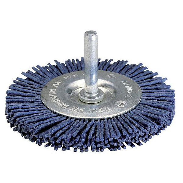 Wolfcraft Nylon brushes blue. Suitable for power drills. For cleaning and gentle polishing. For metals, wood, plastic materials. Non-aggressive thanks to its fine grain nylon wires. Material nylon wire.