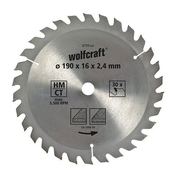 These TCT circular saw blades are from the Wolfcraft Brown Series for making quick, fine rip and cross cuts in wood and manufactured boards such as chipboard. The surface has been ground and the tooth rim is shot-blasted. The teeth are arranged in an alternating pattern.