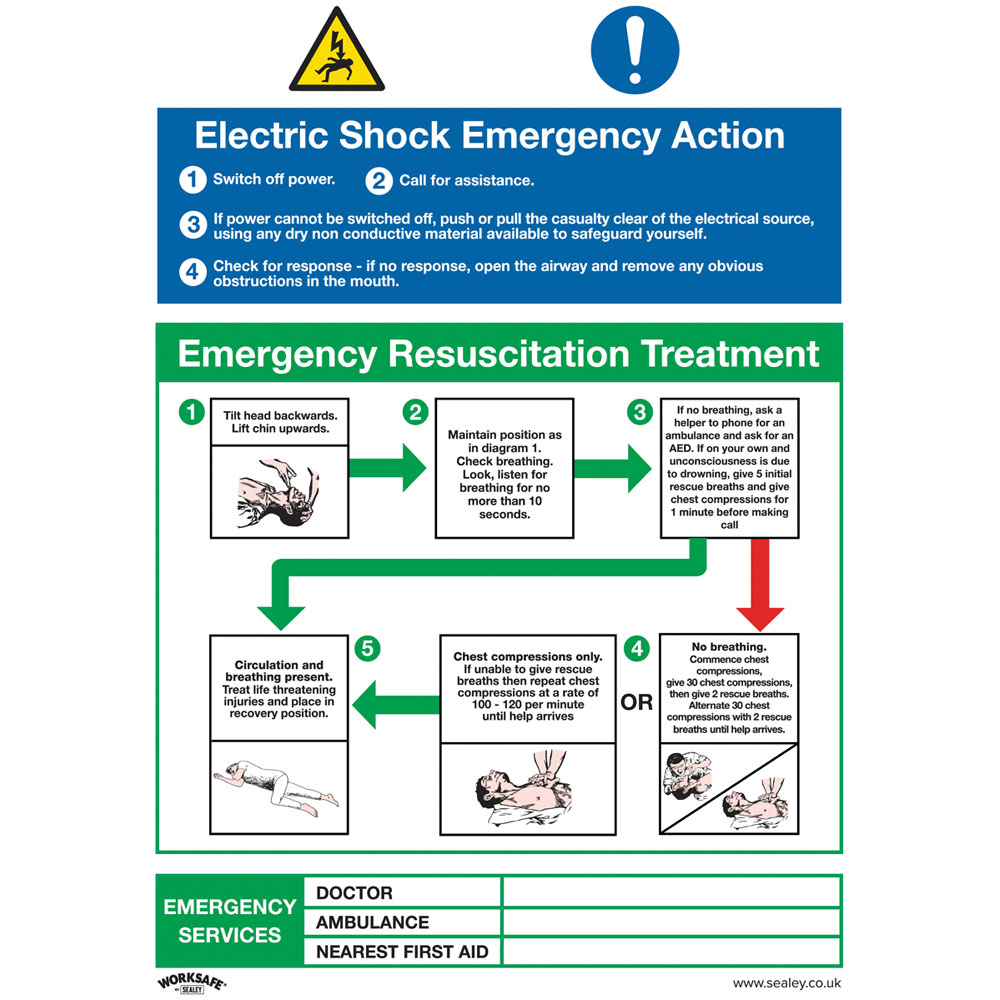 Worksafe SS33P1 Safety Sign Electric Shock Emergency Action - Rigid Plastic
