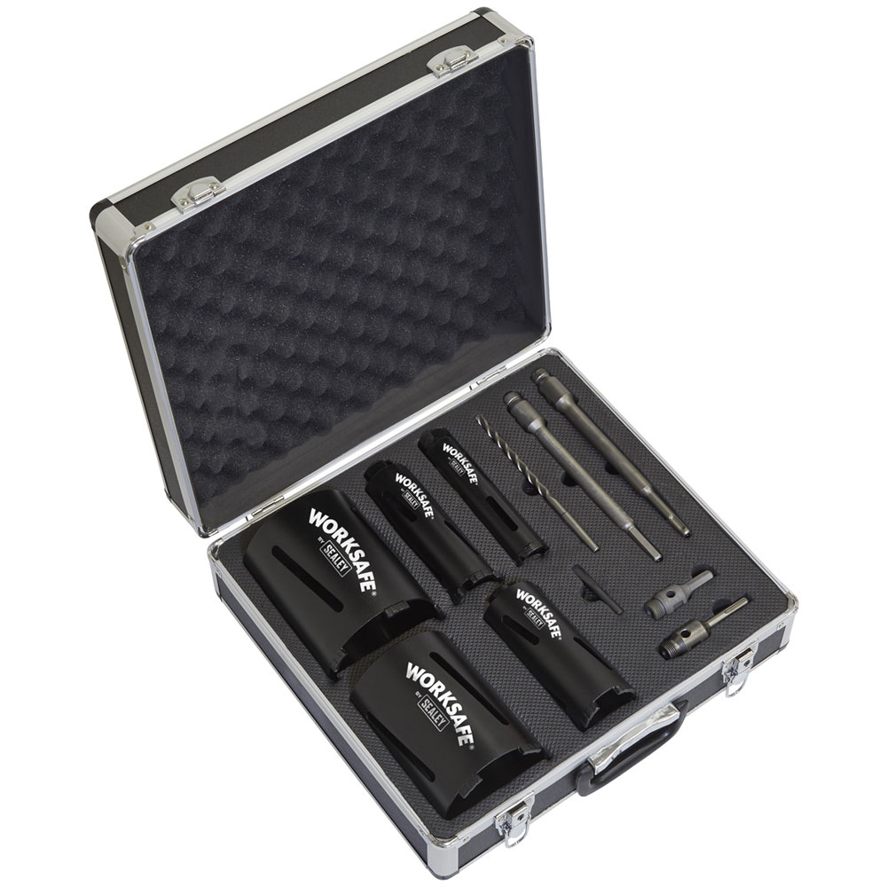 The Sealey WDCKIT5 is a Diamond 5 Core Kit (Ø38, 52, 65, 117, 127mm Cores with Adaptors)