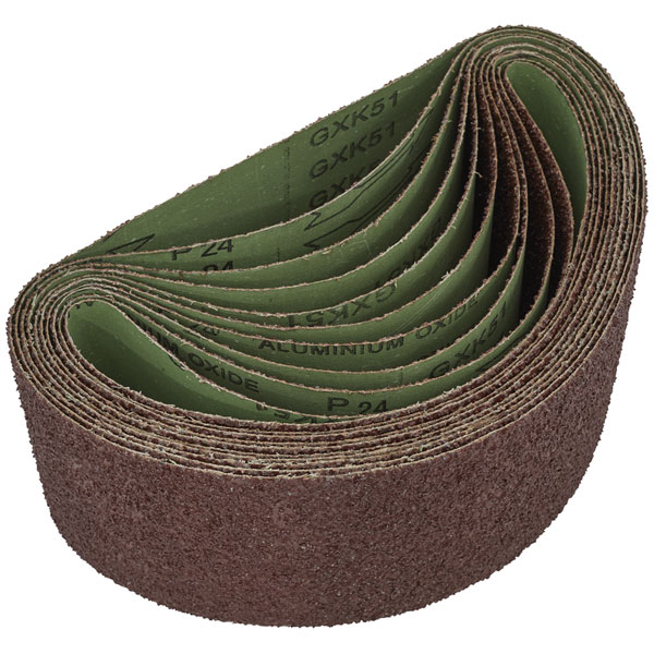 • • Aluminium oxide resin bonded sanding belt. • Suitable for woodworking applications on portable belt sanding machines. • 24Grit. • Supplied in pack of 5. • Model No. WSB61245