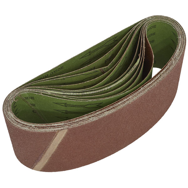 Aluminium oxide resin bonded belt suitable for woodworking applications on portable, belt sanding machines.