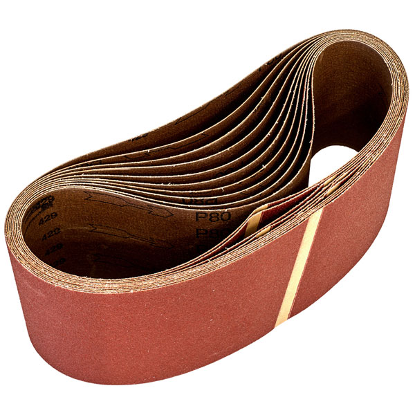 Aluminium oxide resin bonded belt suitable for woodworking applications on portable, belt sanding machines.