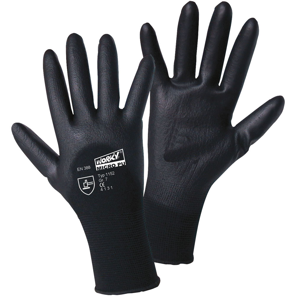 Worky 1152 MICRO Black Nylon-PU Partly Back Coated Fine Knitted Glove - Size 8