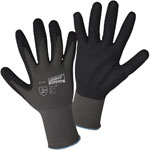 These 100% grey nylon gloves from Worky have a black sandy foam nitrile palm coating which provides a secure grip in wet conditions. These gloves are especially useful in assembly work, in warehouses and other trade areas.