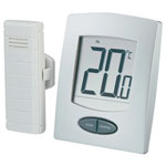 This wireless thermometer provides you with information about the current indoor temperature, while the outdoor temperature can be displayed with just the push of a button. The highest and lowest values can be automatically saved and retrieved as and when needed. Featuring an extra large display, the thermometer can also be stood on a table or wall mounted.
