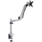 The display stand is ideal for screens of 76cm max. (30in) with a gap between the holes for VESA 75 x 75 or 100 x 100mm. Included is a vice and a port fixation system, which you can attach the bracket to the edge of the table, or fix it through a hole in the table. You'll be sure to mount the bracket to any table/desktop without having to buy additional accessories.