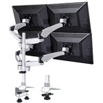 This rotating quadruple monitor bracket from Xergo has two pivots, as well as an adjustable height for optimal viewing. The height adjustment (44cm) of the screen is very easy, while the telescoping feature allows you to adjust the viewing distance to the monitor as needed. It can be rotated by 240°, tilt 105° and 360° swivel. The support is ideal for screens of 69cm max. (27in - see below) with a gap between the holes for VESA 75 x 75 or 100 x 100mm.