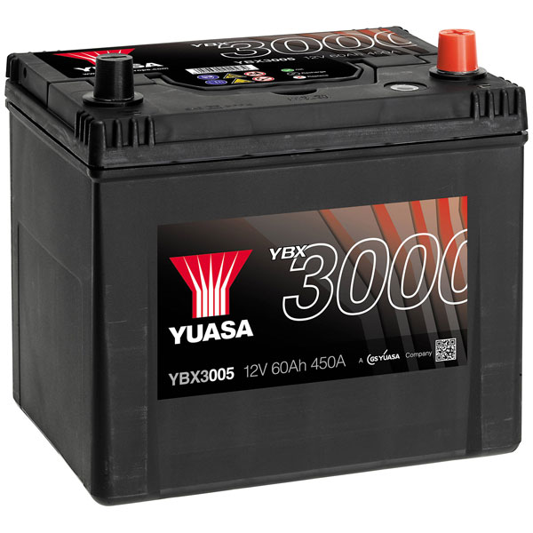 Yuasa YBX3005 SMF Car Battery 60Ah T1 Pin 1 piece