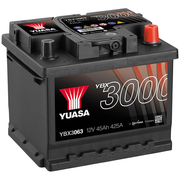 The Yuasa YBX3063 car battery features a capacity of 45 Ah and is designed with a pin type T1 configuration. As a part of Yuasa's extensive line of reliable batteries, it serves as an effective starter motor battery for various automotive applications. It is widely used in cars, motorbikes, and even as a power source for motorcycle accessories.