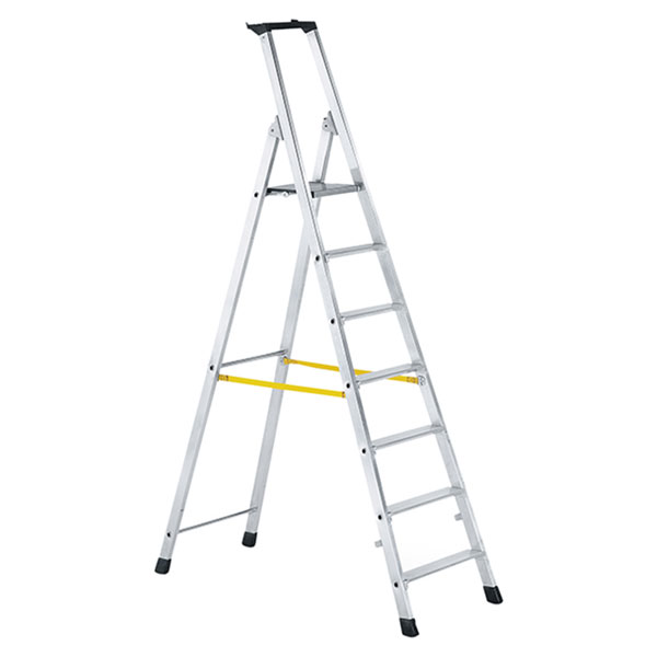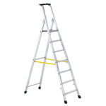 The legs are fitted with non-slip plastic shoes for firm footing. Anti-splay Perlon straps are fitted on 7, 8 and 10 tread ladders. There is also a practical storage tray with plenty of space for tools and small parts.
