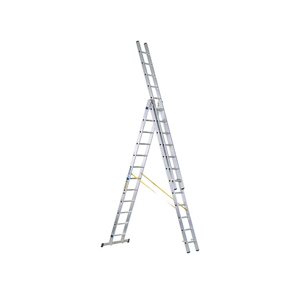 The Zarges D-Rung Combination Ladder can be used as a triple or double extension ladder and an ‘A’ frame ladder. Lockable ladder sections prevent collapsing during use. For added safety the ladders are fitted with anti-splay perlon straps. Comfortable D-shaped rungs and a stabiliser bar provide added stability.