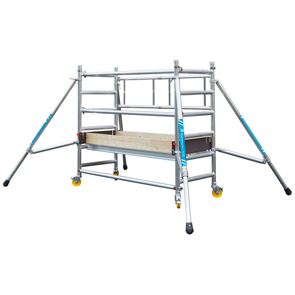 The Zarges Reachmaster® PLUS offers lightweight versatility for both indoor and outdoor applications. Designed with trade professionals in mind, the compact Base Pack ensures easy transportation through standard doorways and corridors. The folding frame features a snap-click mechanism for fast, straightforward assembly - ideal for a one-person setup. Swivel locking castors enable easier movement, when required. The sturdy platform has a built-in trapdoor for easy access to each level.