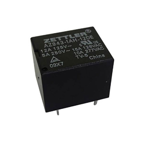 The Zettler Electronics AZ943-1CH-24DE is a PCB relay capable of switching 15 A at 24 V DC. This mini relay features a single change-over contact, making it suitable for various electronic applications. It is typically used in devices requiring compact and reliable switching solutions on a printed circuit board.