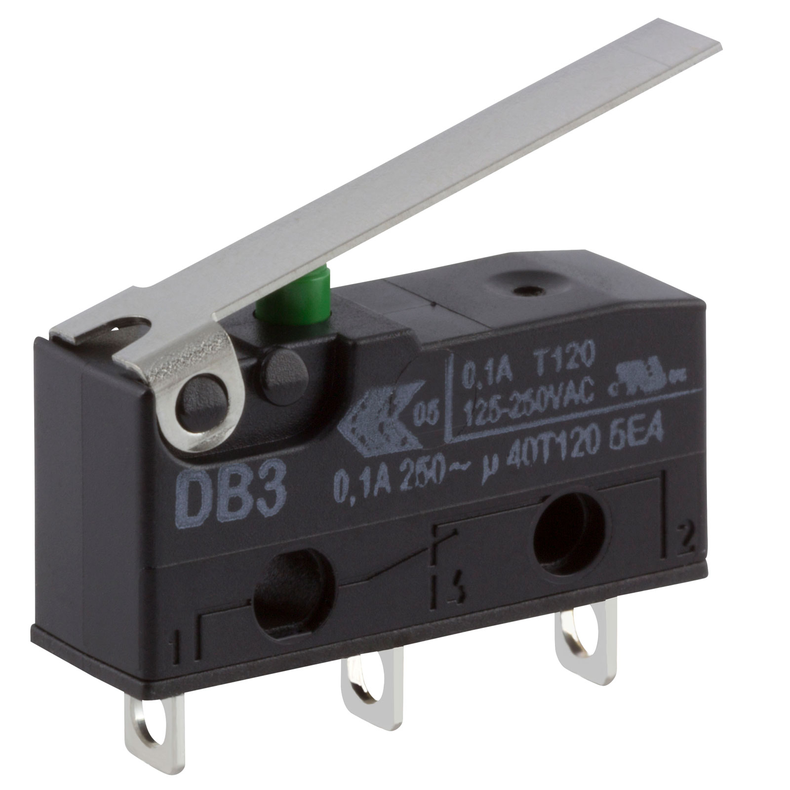 ZF DB3C-A1LC Microswitch SPDT 0.1A 250V AC, Medium Lever, Solder