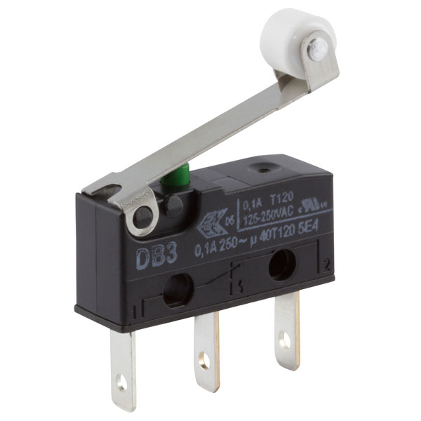 ZF DB3C-B1RC Microswitch SPDT 0.1A 250V AC, Medium Roller, Q.C.