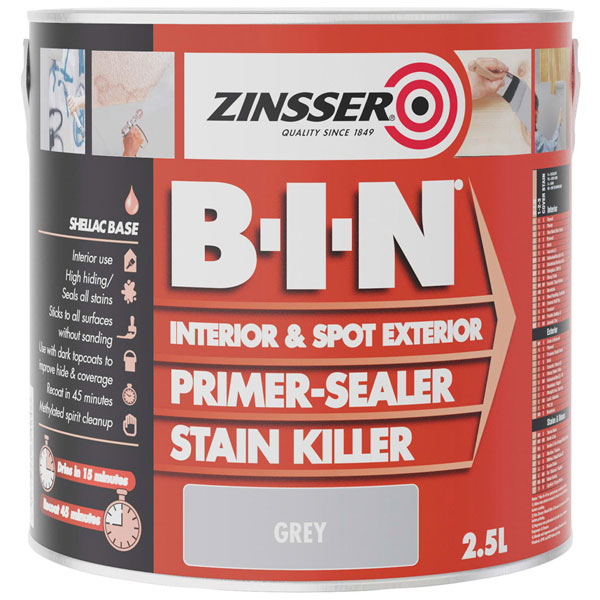 Zinsser ZN7020353C1 B.I.N® Primer, Sealer & Stain Killer Paint Grey 2.5 litre