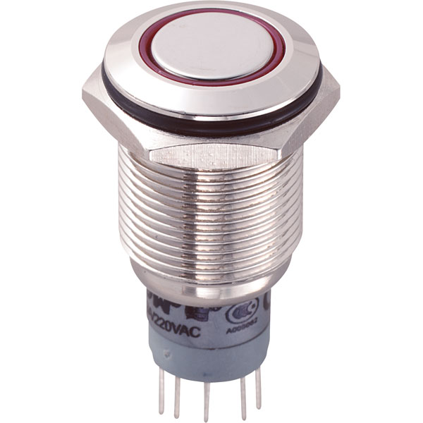 Zip Switch LAS2GQF-22ZE/R/12V/N/P 16mm IP67 Vandal Switch DPDT On-On Red LED